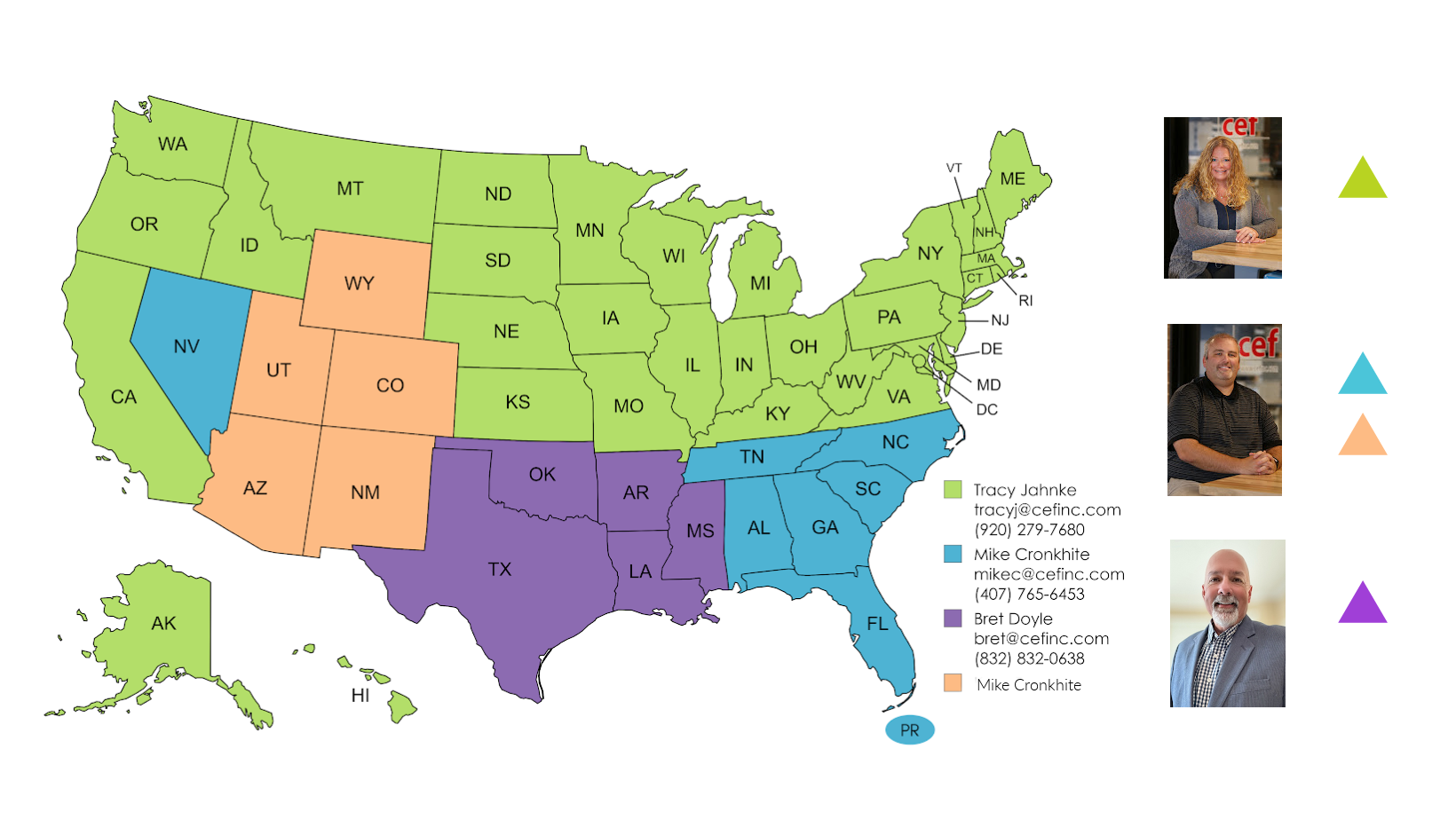 To find a local furniture dealer in your area, don't hesitate to contact one of the sales representatives below or email cef@cefinc.com.