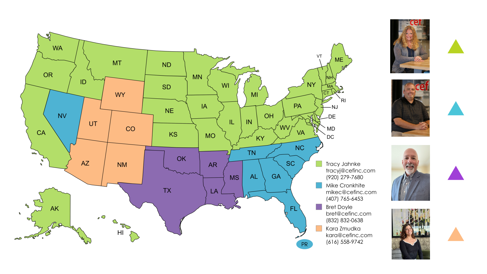 CEF offers symbols in CAD, Revit, & CET. We are on Configura in CIL (Commercial Interiors Library) and on MRL (My Resource Library). If you need further assistance, please reach out to the appropriate sales representative below or email our office at cef@cefinc.com. You may also call at 1-800-255-9189.