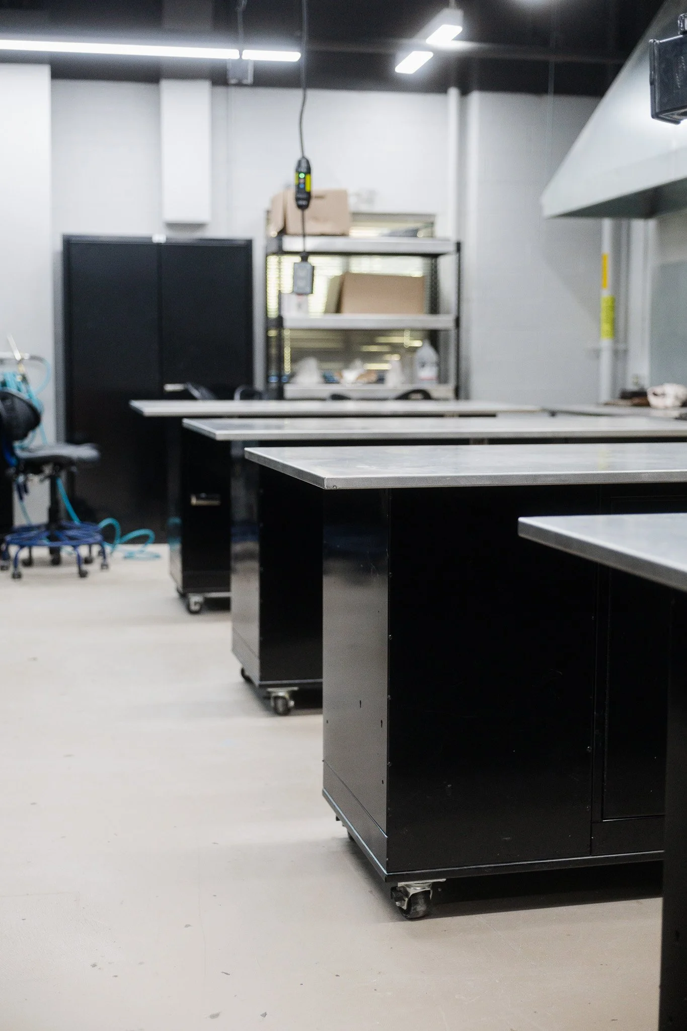Our Chemical Resistant Top is constructed from 1" compact laminate engineered for demanding environments. Flame retardant and tested against over 50 chemicals, this non-porous surface is designed to resist stains, impact, and both wet and dry heat. It also features anti-bacterial, anti-viral, and anti-fungal properties, making it an ideal solution for labs, classrooms, and technical workspaces.