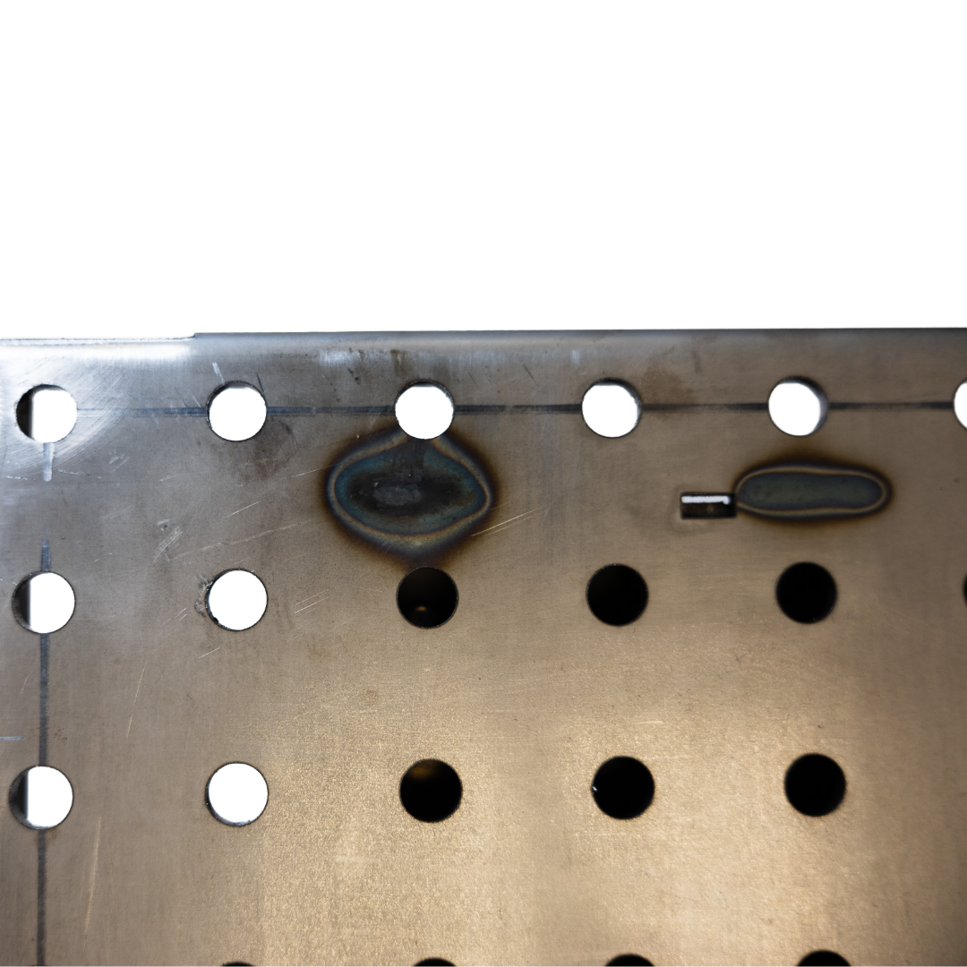 Designed for welding instruction, this 42W×60L×36H 2" raw steel tabletop offers durability, stability, and performance. Precision-cut holes enable secure use of pegs to hold materials in place, making it ideal for safe, hands-on classroom training. Ganging fasteners are included to connect tables for a larger work surface.